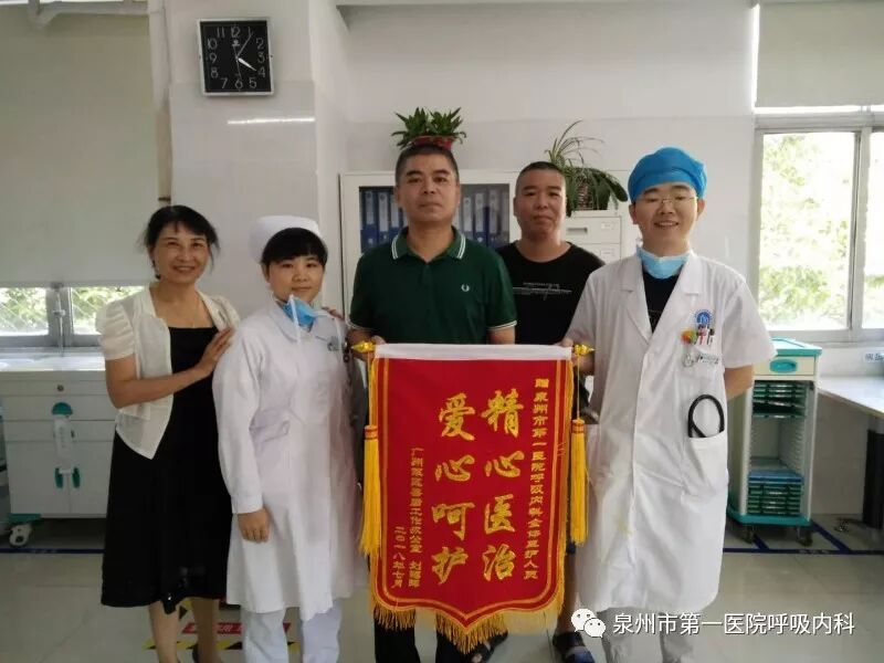 7月20日,在泉州市第一医院呼吸内科就出现了这样感人的一幕:在该科住院的刘某去世了,病人的家属处理完后事后特意来到医院,送上“精心医治,爱心呵护”锦旗感谢呼吸内科黄颂平主任、陈冬冬医师等等医护人员的精心治疗和护理。