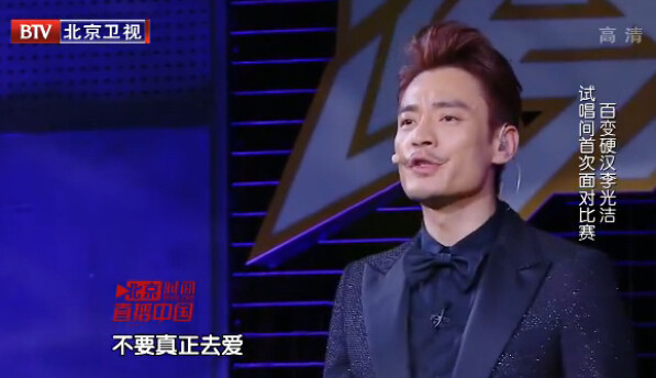 最后一个出场的李光洁一上来先把评委哄高兴了,表示自己心目中最好的三位歌手分别是张学友,陈奕迅,巫启贤。本场比赛李光洁选择了张学友的《如果这都不算爱》。李光洁声音非常富有磁性,几位评委也连连称赞辨识度高。