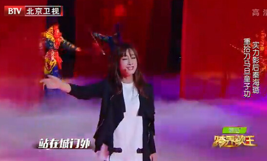 第五个出场的是曾经唱过京戏,当过刀马旦的专业唱将秦海璐。梳着半丸子头的秦海璐看起来少女感十足。谈到自己参加本次比赛的目的,秦海璐说:我当了这么久的演员,演的都是别人,唱歌能给我一个出口,表达我自己的情感。她唱了阿信的《北京一夜》,京戏腔十足,并现场表演了排练许久的、已经生疏了二十年的刀马旦功夫,在现场获得超高人气。