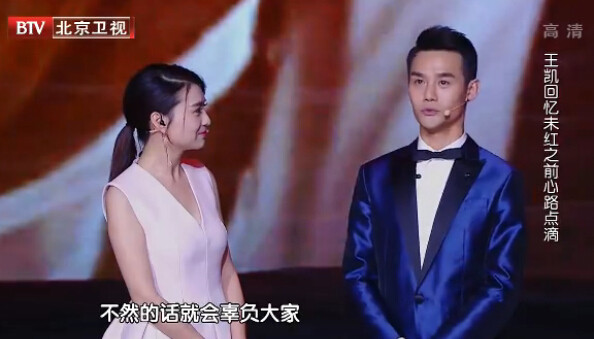 第四个出场的是首发阵容里呼声最高的王凯。王凯演唱了王菲的《匆匆那年》,首次登场歌唱舞台王凯也表现的比较紧张,以舞台剧形式呈现的《匆匆那年》视觉和听觉上都非常不错。演唱完毕王凯还谈到自己走红之前的心路历程:现在得到这么多人支持,很感激,但反而危机感更重,更担心辜负大家。