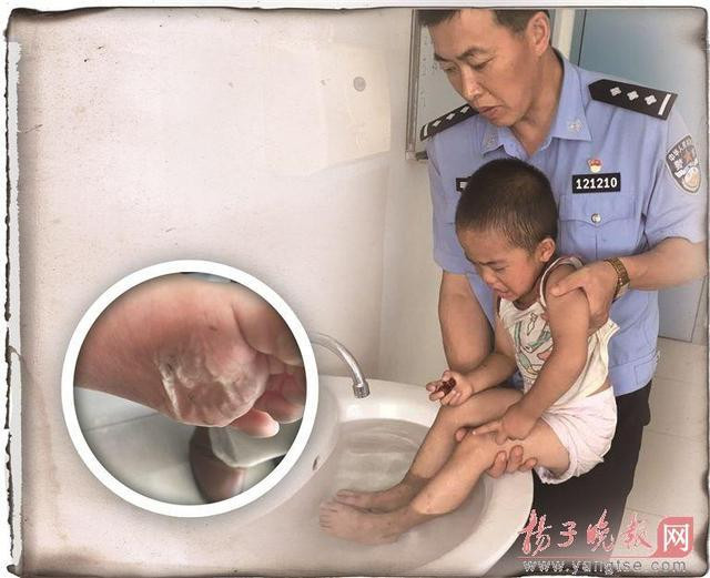 民警介绍,当天上午泰州海陵区气温已经达到38℃,水泥路面温度高达50℃。由于孩子所居住的工地附近都是柏油路,其外表温度要达到59℃,孩子娇嫩的脚心根本受不住这么高温度的炙烤。
